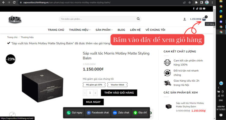 Bước 2 : Bấm vào giỏ hàng để xem những sản phẩm đã chọn